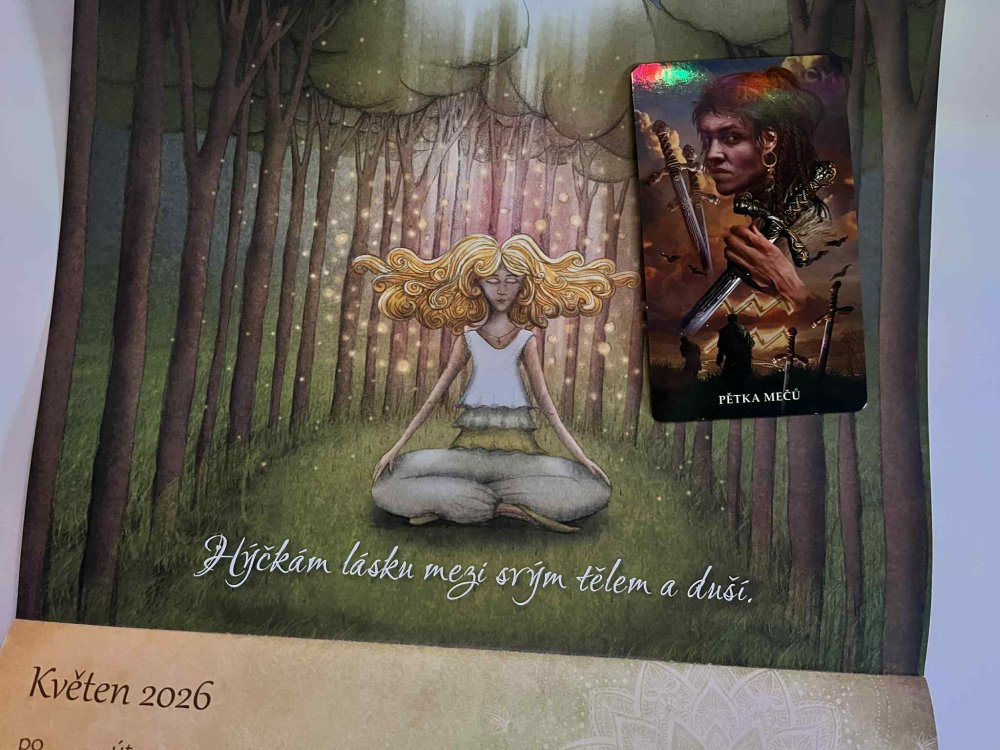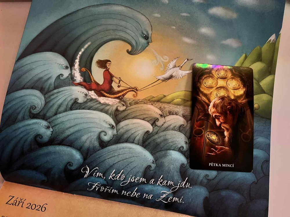 Kalendář Miluj svůj život 2026 je tady. My si přidáme ještě kartičku! 18. 09. 2025 Rok 2026 Kolo štěstí v akci jako ROČNÍ KARTA Krajina, před kterou sedí dívka je plná ptáků, vodopádů a lesů, je zcela evidentně fascinující. Dívá se, vnímá a pozoruje. Rok 2026 může být právě takový. Jako scéna ve filmu, v divadle. Výjev obklopuje duha jako symbol štěstí. Součet čísel roku nám dává 10, tedy jedničkový rok. Nové začátky, přímý směr. Naprostá změna stagnujících energií. Kolo štěstí jako přiložená karta to potvrzuje. Celý rok bude o pohybu věcí k lepšímu. K něčemu, nač se můžeme chvějivě těšit. LEDEN: „Buduji své sebevědomí krůčky z bezpečí“ Ta situace je nepatřičná a byť mne to stresuje, potřebuji se z ní dostat. Tak by se dal nazvat pocit, který má muž na kartě. Trojka mečů zní dramaticky, v kontextu muže vcházejícího do úlevné nadějné krajiny je ale poselství jasné. V lednu za cenu nepohodlí, stresu a bolesti odhodíme dramata minulosti a začneme budovat nové bezpečí. Testovat nové kroky, žít svobodněji a s vidinou naděje. ÚNOR: „Pečuji o své tělo a duši“ Duha nad hlavou chlapce v kádi s mydlinami symbolizuje možná celé roční téma. Dotek štěstí. Když se do toho opřeme, vydrbeme tělo, duši dočista, tak se na nás usměje duha, štěstí, rok se posune správným směrem. Páže mečů z tarotu taky ví, kudy se dát. Ještě se bojí, je sotva vycvičené a poprvé jde do akce. Minimálně budeme mít cestu naplánovanou. Někdo už po ní odvážně půjde. Žabka u kádě chytá do tlamky osvěžující kapky vody. Chytejte život, příležitosti! BŘEZEN: „Jsem pozitivní za všech okolností“ Sedící žena v klidu slepuje rozbité džbánky. Ze starého tvoří nové. Vidí, co cenného nechce vyhodit, co chce opravit. Náš březen může být o usmiřování a probouzení dobra v sobě i druhých. Císař tomu všemu dodává realistický podklad. Snad k nám doputuje to, co je třeba vyhladit láskou a pochopením. Poté se to odvděčí pocitem síly, zázemí a volným nadechnutím se ve světě. Císařova kamenná maska praská, jeho síla, jeho rozhodnutí mění životy, změkčuje jistou naši životní oblast. DUBEN: „Dělám vše s nadšením a láskou“ Pro cokoliv se rozhodnu, chci si maximálně užít. Když své srdce pustíme do světa, když ho budeme žít, tak nás i karta Smrt pustí do života. Máme propouštět negativní a vnímat pozitivní. Tahle karta to mohutně podporuje. Čím víc se rozhodneme žít, tím dál bude minulost nebo to, co nám ve skutečnosti vždy bralo energii. Co patří minulosti, jasně uvidíme. Co patří budoucnosti, bude žít. Pečujte o své zdroje, radost, nadšení, žijte! KVĚTEN: „Hýčkám lásku mezi svým tělem a duší“ Meditující žena je pod ochranou svých andělů, hýčká se. Naslouchá andělům. Možná se jí dostane konkrétního daru od osudu. Karta napovídá jakého. Pamatujete si na chvíle, kdy jste měli pocit, že jste v životě vše prohráli? Nyní se vám ztracené vrátí. Boje, dramata odejdou. Zlé bylo pro něco dobré. Nepouštějte se do zbytečných žabomyších válek. Tvořte vlastní rituály. Svět dává smysl, život dává smysl víc než kdy dřív. ČERVEN: „Pečuji o své talenty a stávám se mistrem“ Žena zalévá květiny. Kvetou. Náš život bude v červnu také kvést a nejspíše tu bude i něco, v čem budeme mistři. Dojde nám, že tady je naše místo. Náš svět. Všechno nové bude dobrým začátkem dalšího! Přímý směr naplno podporuje Blázen. Klidně pěstujte i neznámé sazeničky, zkoušejte nové, kořínky se uchytí. Úspěšný měsíc, kdy i sklizené ovoce poskytne prvotní investici do něčeho zcela nového. ČERVENEC: „Tvořím své vize s nadšením a nelpím na nich“ Je čas hodit kostkou. Vhodit něco životu všanc. Vize a představivost nás mohou přivést k nejednomu úspěchu nebo zcela nové životní cestě. Tohle je jen začátek. Karta Svět je o přerodu jednoho v druhé. Vylíhnutý motýl z kukly je v úžasu, co všechno umí. Využijte to, co máte, co umíte a věnujte to své budoucnosti. Nechte ji samotnou, ať vám určí, v čem máte pokračovat. Zvelebujte sebe i svět kolem sebe. SRPEN: „ Miluji sebe, abych mohla milovat ostatní“ Most mezi mužem a ženou. Mosty mezi světy, lidmi a tématy. Čas přeje komunikaci, vnímání, každodennímu probouzení laskavosti. Každý jsme jiný, vidíte tu krásu ostatních lidí? Také Páže mečů na přiložené kartě mazlí svou lišku. Bude srpen měsícem mazlení se se životem? Vše zraje, začíná zrát, vypadá to, že žraloci, kteří pod dvěma ostrovy srdce na obrázku, budou moci zůstat v klidu. Drama se nekoná. Želva na Pážeti mincí proplouvající na kartě je o pomalosti… nespěchejte na sebe, na lidi kolem. ZÁŘÍ: „Vím, kdo jsem a kam jdu. Tvořím nebe na Zemi“ Směr je jasný. Žena na lodi je tažena labutí pod ochranou vlny a větru. Má směr, ví, jaká budoucnost ji čeká, vnímá smysl života. V talentech a souladu nepocítíme únavu. Pokud budeme na scestí, asi nás únava dostihne. Ale karta Pětky mincí, chudobné a zoufalé, je také o pomoci zvenčí. O tom, že možná nám někdo ten smysl života ukáže a otře slzu. Že my sami budeme těmi, kdož někomu ukáží cestu. Mezilidská setkání mohou mít nyní obzvláštní sílu. ŘÍJEN: „Ctím sebe a morální hodnoty“ Neznevažujte se, jděte za svým morálním kompasem. Možná vlastní temnota bude tím, co nám nyní ukáže cestu k dobru. Také karta Ďábla to potvrzuje. Se stíny se možná setkáme, ostatně bude halloweenský čas. Mají nás ale nasměrovat k úlevě, dobrotě a osvobodit nás od nevhodného. Hledejte důvěru, ticho, bezpečí, dobré zdroje kolem sebe. Vyhněte s